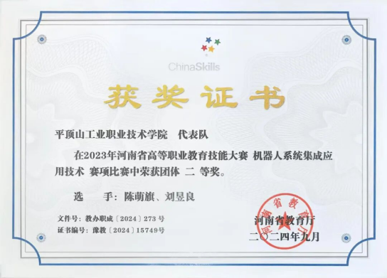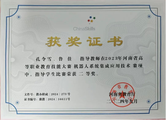 11.学生获2023年河南省高等职业教育技能大赛机器人系统集成应用技术赛项二等奖两项。指导老师:孔令雪、鲁佳。