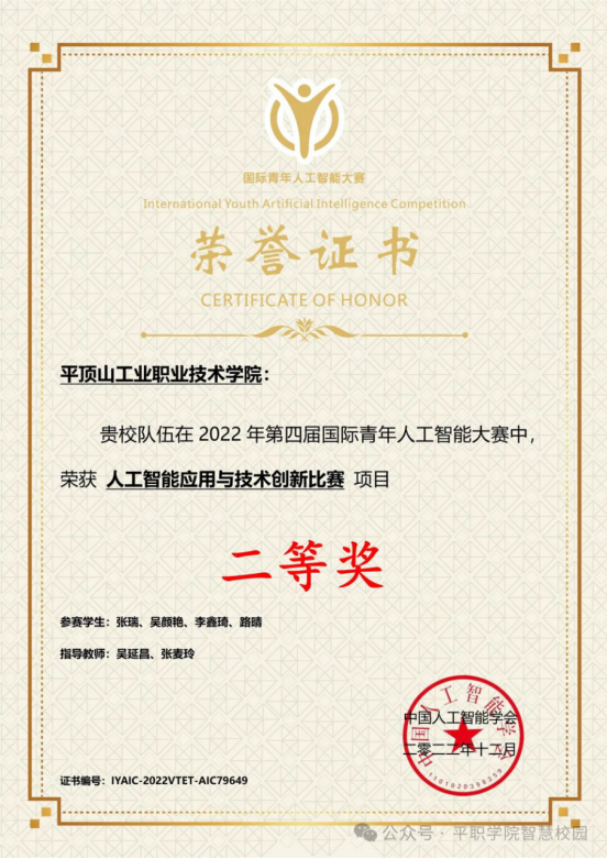 计算机与软件工程学院成立于2001年,现开设三年制专业6个:人工智能技术应用、大数据技术、云计算技术应用、计算机应用技术、计算机网络技术、数字媒体技术,两年制专业1个:计算机应用技术,其中:计算机应用技术为国家示范院校重点专业。拥有省级特色专业建设点1个、省级示范性专业建设点1个、省级综合改革试点专业1个、院级重点建设专业3个。现有专职教师30人,企业兼职教师6人,专任教师中教授1人、副教授11人,具有博士学位1人,硕士学位25人,网络工程师14人,软件设计师8人,省级优秀教学团队1个。国家级精品资源共享课程1门、国家级教学资源库建设子项目1项、国家级精品在线开放课程2门,建有省级职业院校“骨干教师”培训基地1个,省级精品资源共享课程5门、省级精品在线开放课程4门。主持参与河南省、平顶山市、中国平煤神马集团重大科技攻关项目10多项,获得河南省科技进步奖4项,河南省各类教学成果奖20多项,发表高水平论文200余篇,出版专著及教材40余部。学院拥有人工智能、云计算、软件测试、平面设计、计算机网络、学生创新等校内实训室23个,智慧教室12个,计算机1300余台,数位板100套。校外实习基地有中平信息技术有限公司、神州数码控股有限公司、软通动力信息技术(集团)股份有限公司、深圳法本信息有限公司等100余家。