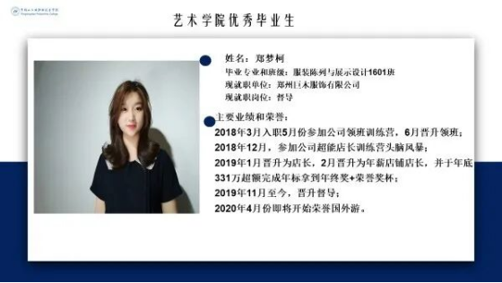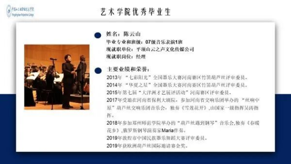 2019年获河南省职业技能大赛声乐赛项三等奖。