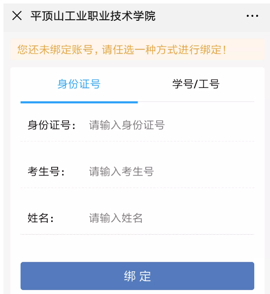 学生第一次进入,需要先绑定账号,输入自己的身份证号、考生号、姓名,验证通过后绑定成功。如提示未成功,请仔细核对填写的身份证号、考生号、姓名与录取信息一致,或者联系招生处(0375-2066462/0375-7023572/0375-7023573)。