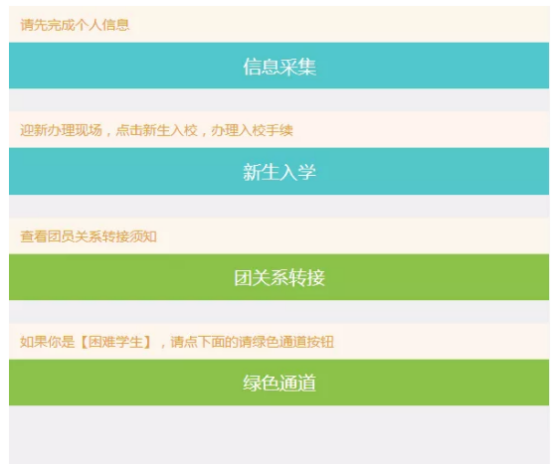 亲爱的同学们,为更好服务新生,我校采用“互联网+移动端”的数字化迎新方式,让新生入学报到更便捷。2021级新生入校报到前须登录平职学院迎新系统,在完成本人账号绑定、新生数据采集之后,完成网上缴费,查看学校关于迎新的最新通知公告。新生可使用手机查看自己的班级信息和当前需要办理的入校流程各环节办理情况等。家庭困难学生可以申请绿色通道缓缴学费,快速办理入校手续。