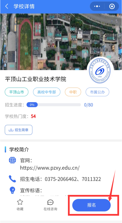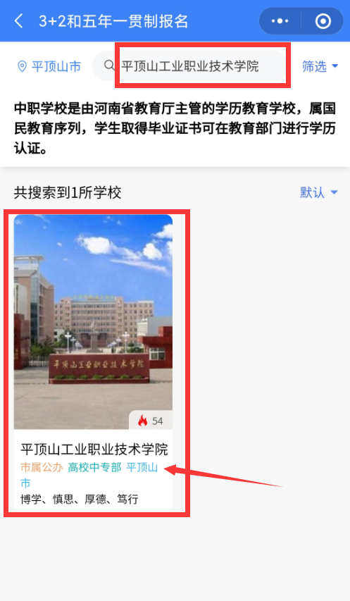 3、搜索栏内输入“平顶山工业职业技术学院”,招生代码 138。